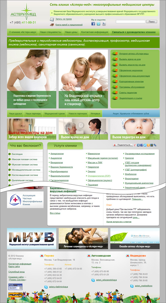 For the multidisciplinary medical complex “Astery-Med”, which provides highly professional medical care to its clients, we have developed and maintained, until 2019, a website that tells about the variety of services provided by the clinic and allows patient to remotely make an appointment and even get a doctor's consultation.